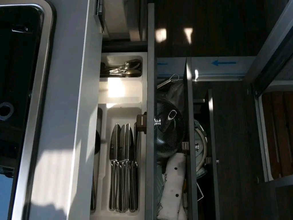 • Nombreux tiroirs et rangements