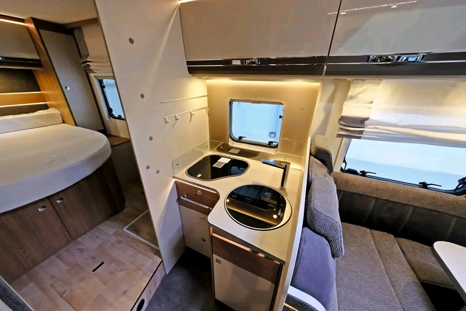Ce modèle, compact et bien pensé, offre un espace de vie chaleureux, idéal pour un couple souhaitant profiter de voyages confortables et sans compromis.