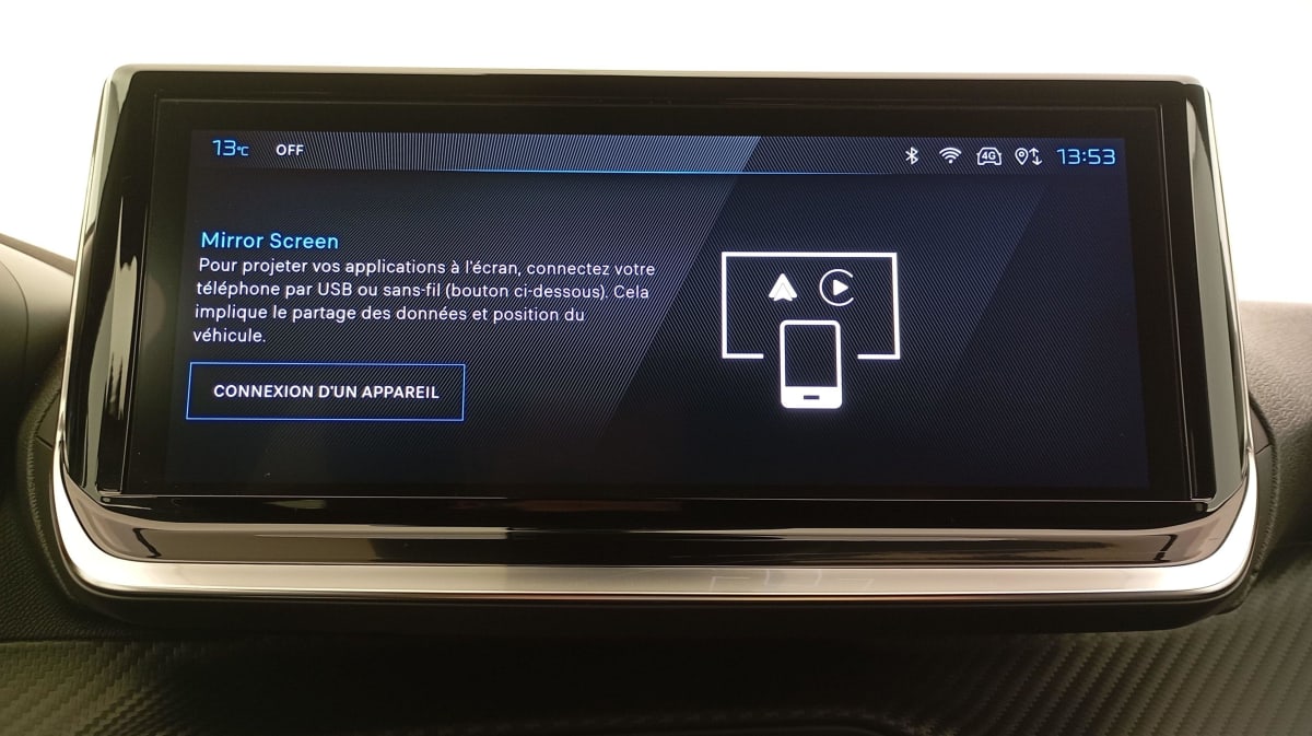 - Peugeot i-Connect Radio DAB avec écran tactile couleur personnalisable 10″ HD,Bluetooth, Mirror Screen sans fil (Apple CarPlay/Android Auto), Wifi, 1 prise USB type C ( Data+charge ) et 1 prise USB type C (Charge) sur console AV