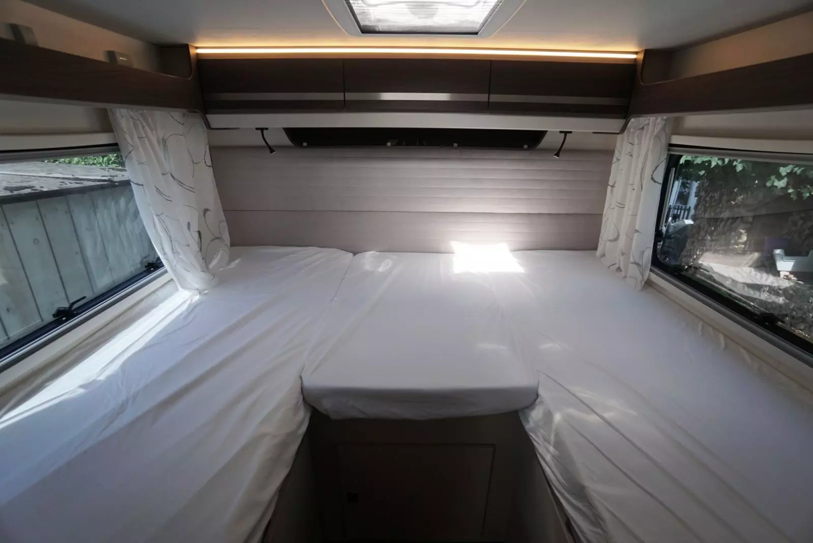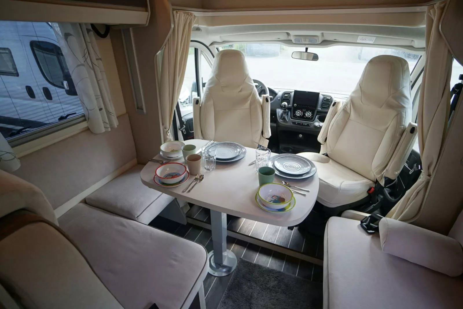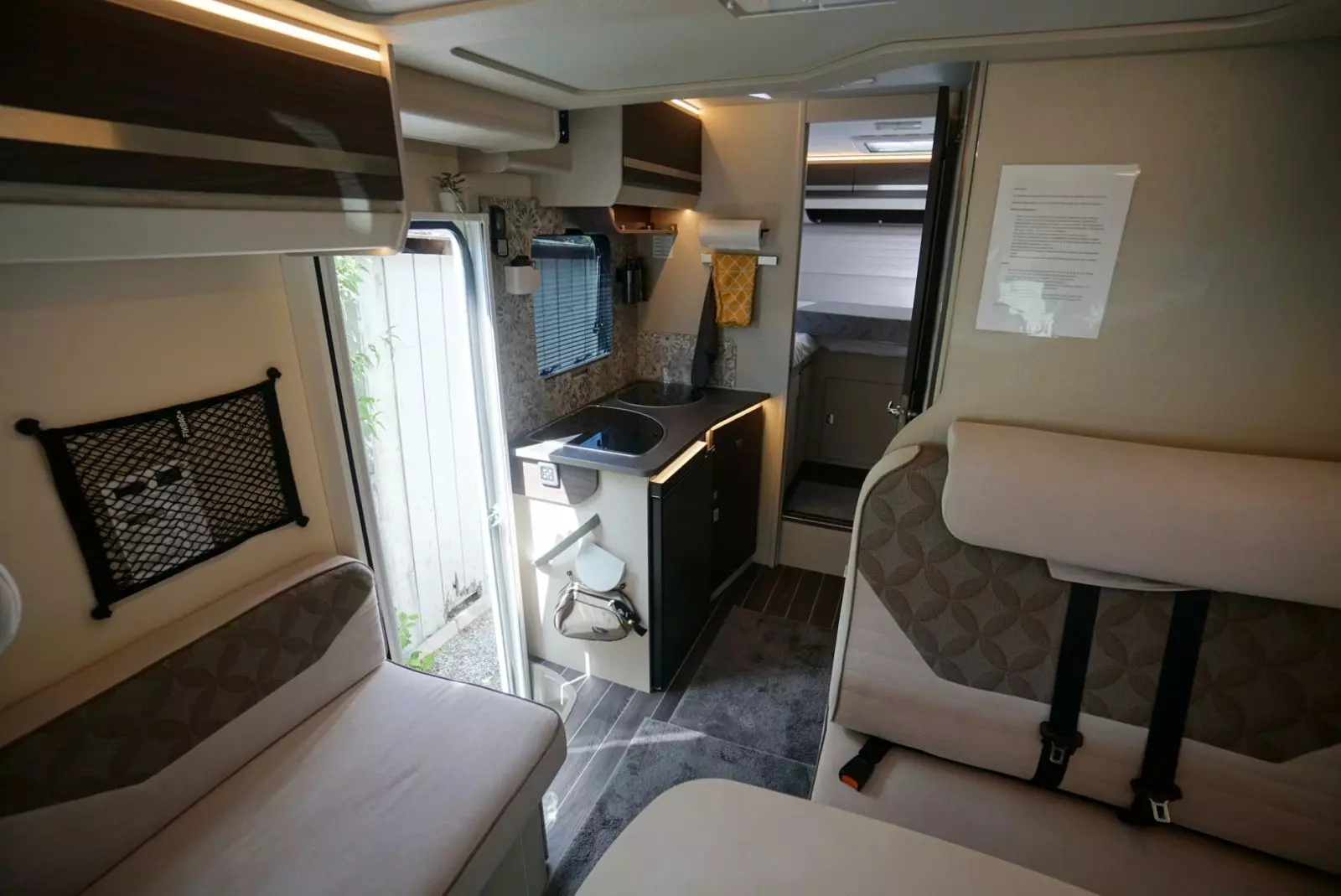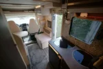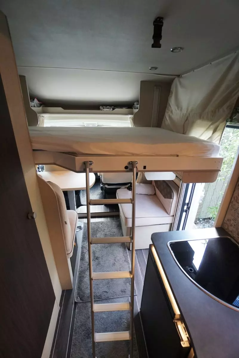 Ce grand et spacieux camping-car avec alcôve offre de la place pour 6 personnes. Il est équipé d’une grande alcôve, de 2 cabines à l’arrière et d’un lit convertible à la table quatre personnes. Il convient très bien aux familles avec enfants car l’espace est généreux.