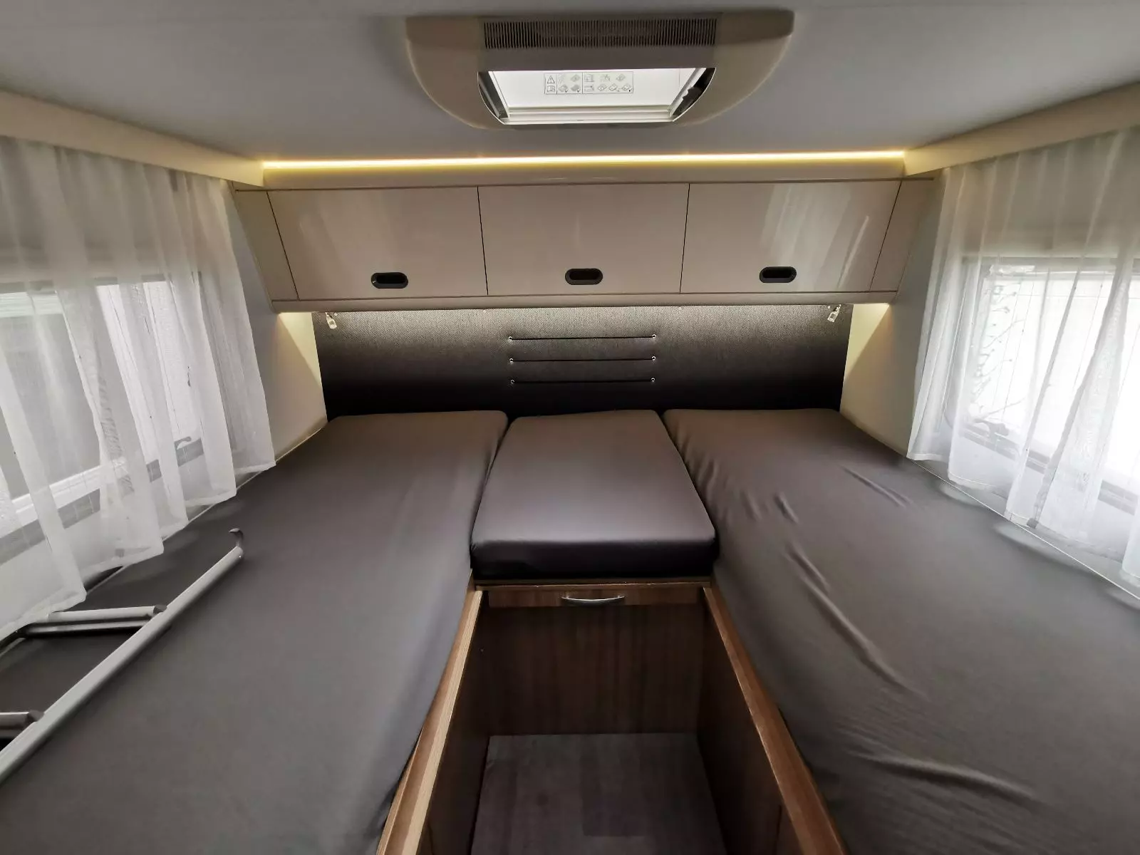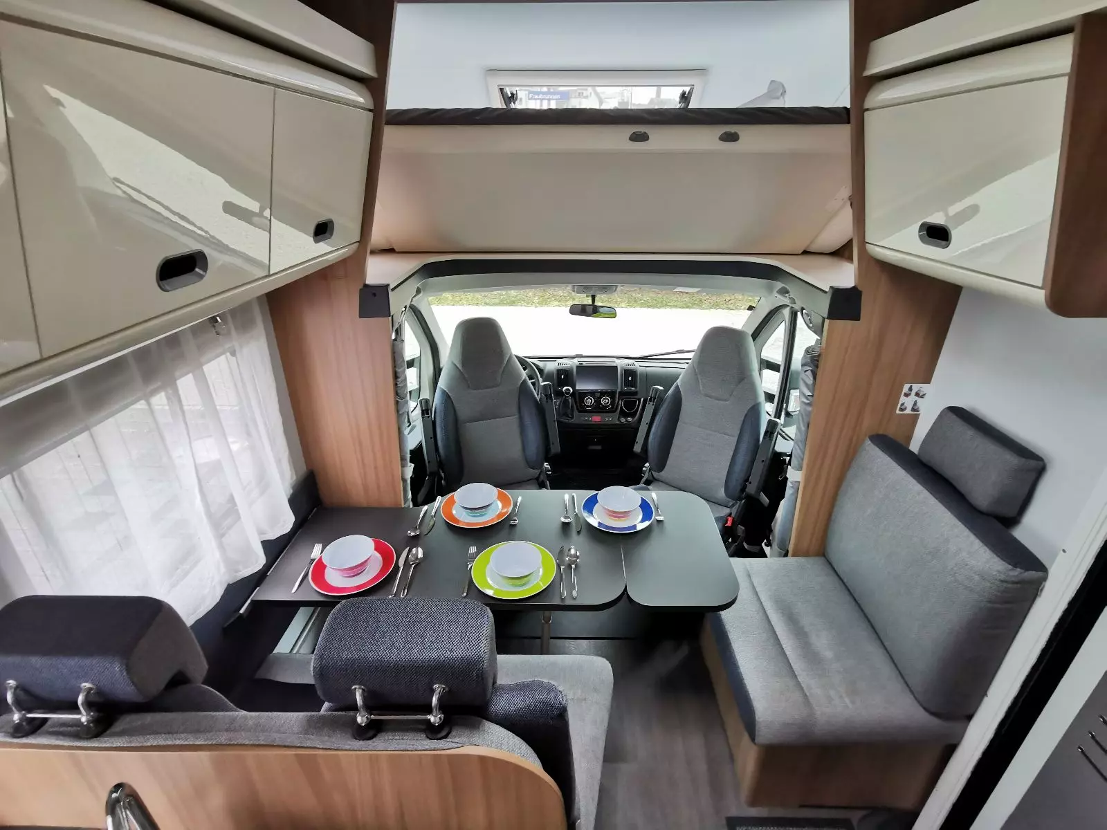 Ce grand et spacieux camping-car avec alcôve offre de la place pour 6 personnes. Il est équipé d’une grande alcôve, de 2 cabines à l’arrière et d’un lit convertible à la table quatre personnes. Il convient très bien aux familles avec enfants car l’espace est généreux.