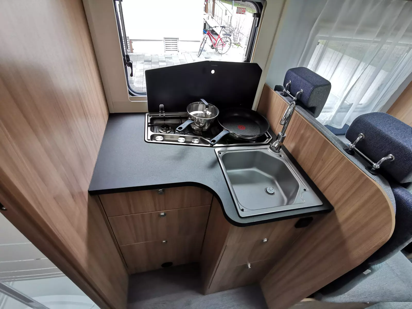 Super contact avec Nabid ! Il nous a tout expliqué. Fourgon en très bon état et très bien équipé. Il y a tout ce qu’il faut, c’est parfait !