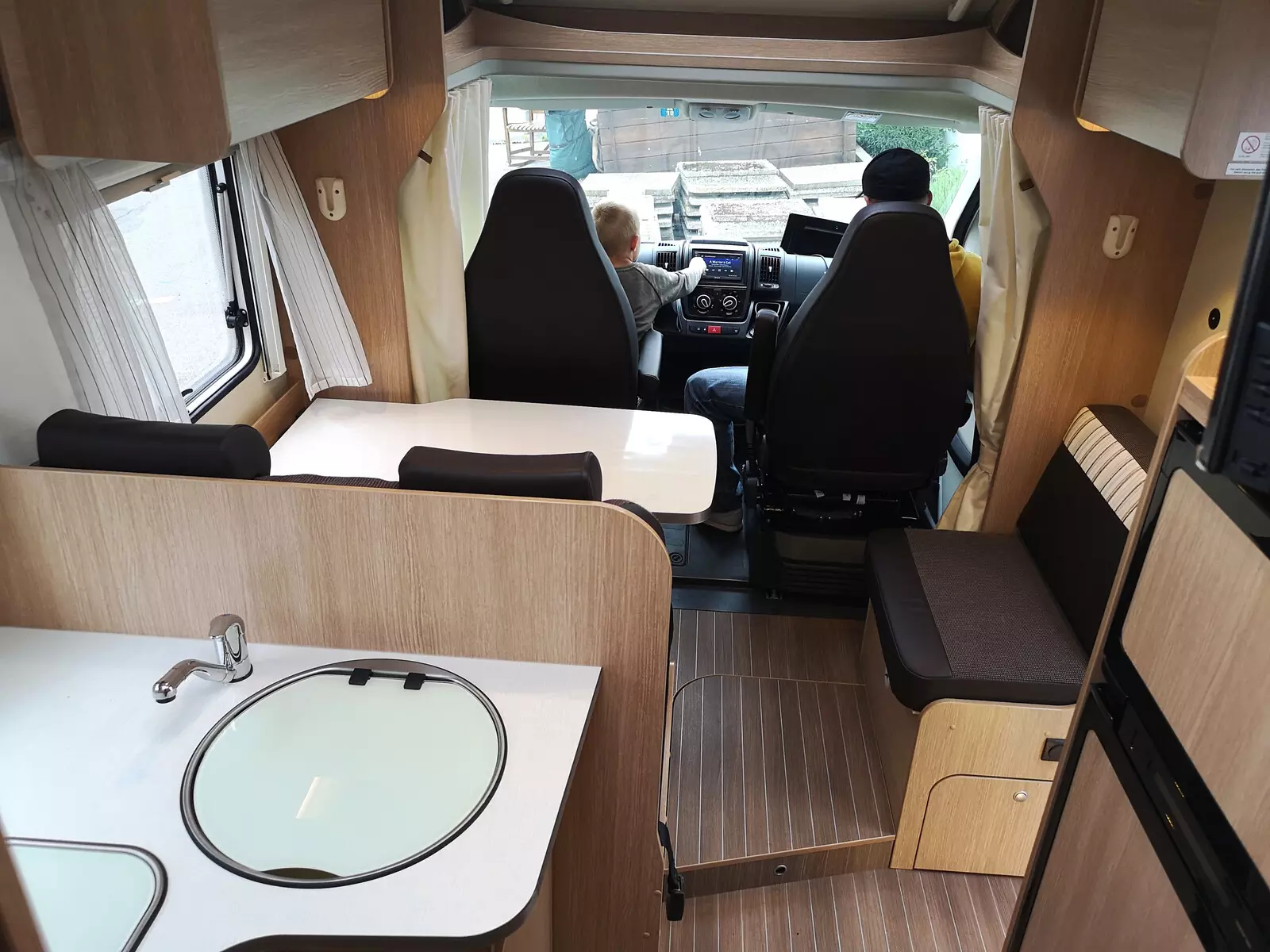 Voyage réussi malgré le mauvais temps, véhicule très propre,on se devait de le rendre bien nettoyé. Bon équipement (seul manquait le tuyau de raccordement eau,ou ne l’avons pas trouvé)Nous avons pu essayer le système des lits jumeaux.Un frigo de grande capacité.Merci à Sergio pour sa gentillesse !